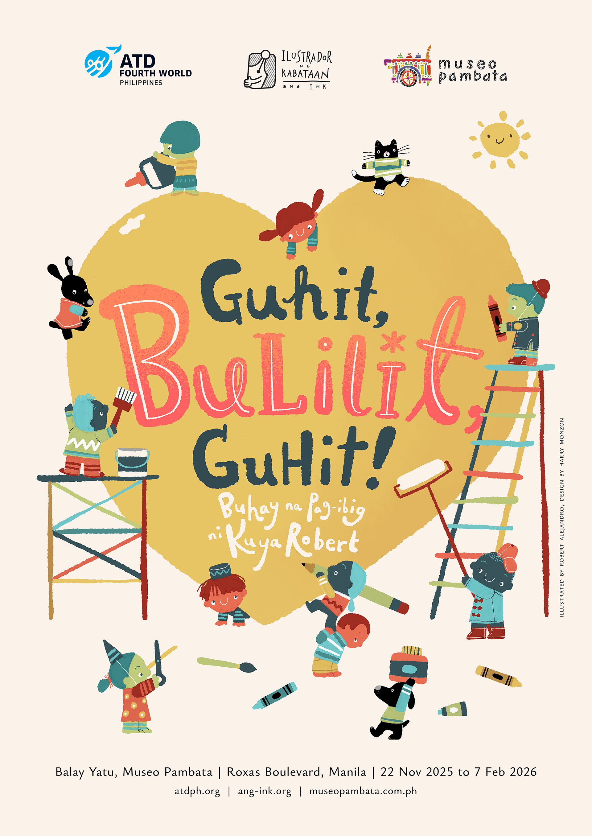 For its 2025 annual exhibit, Ang Ilustrador Ng Kabataan (Ang INK) partners with All Together in Dignity (ATD) Fourth World - Philippines and Museo Pambata to pay tribute to the late award-winning graphic artist, illustrator, painter, and crafter Robert A. Alejandro (1963-2024).