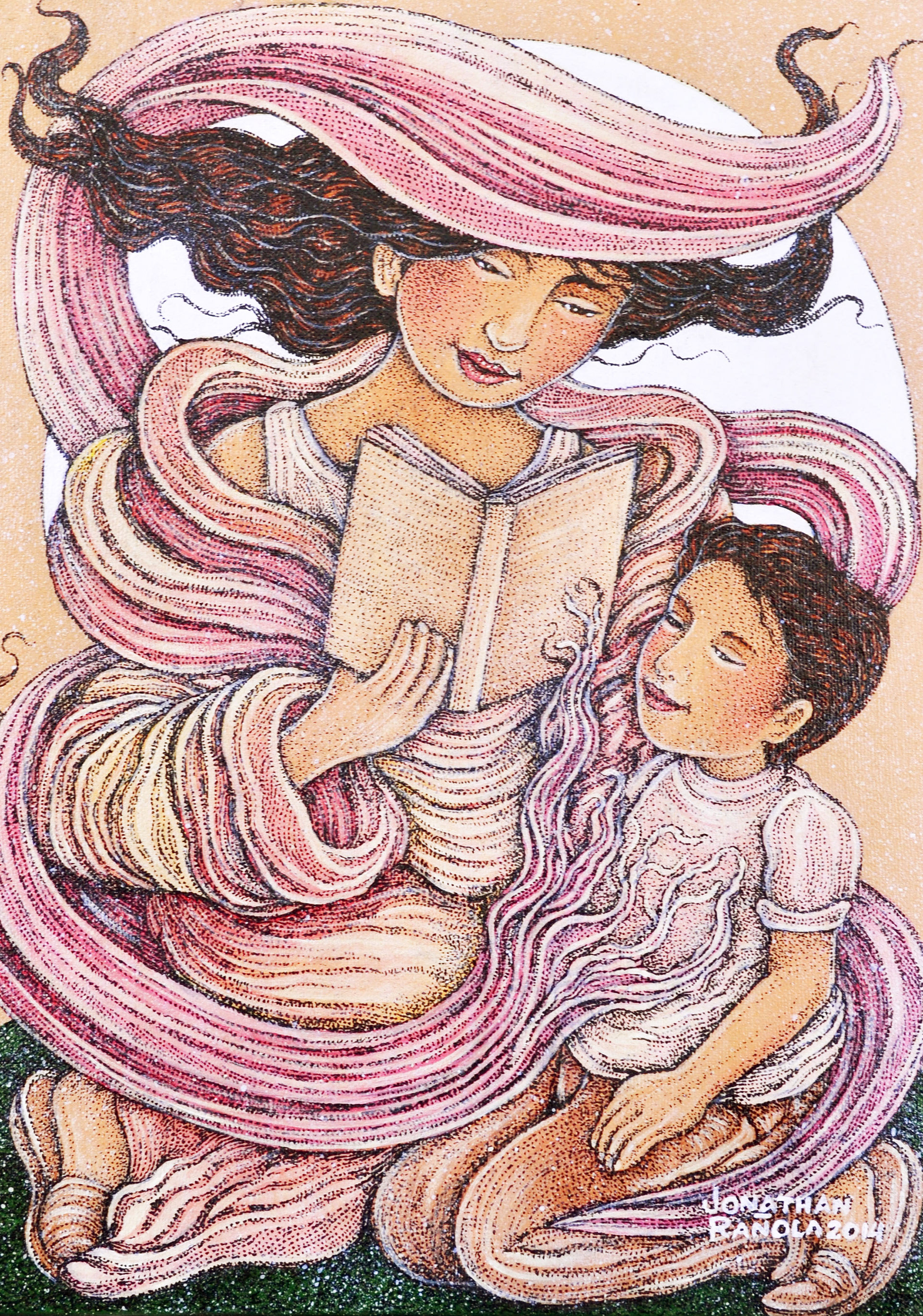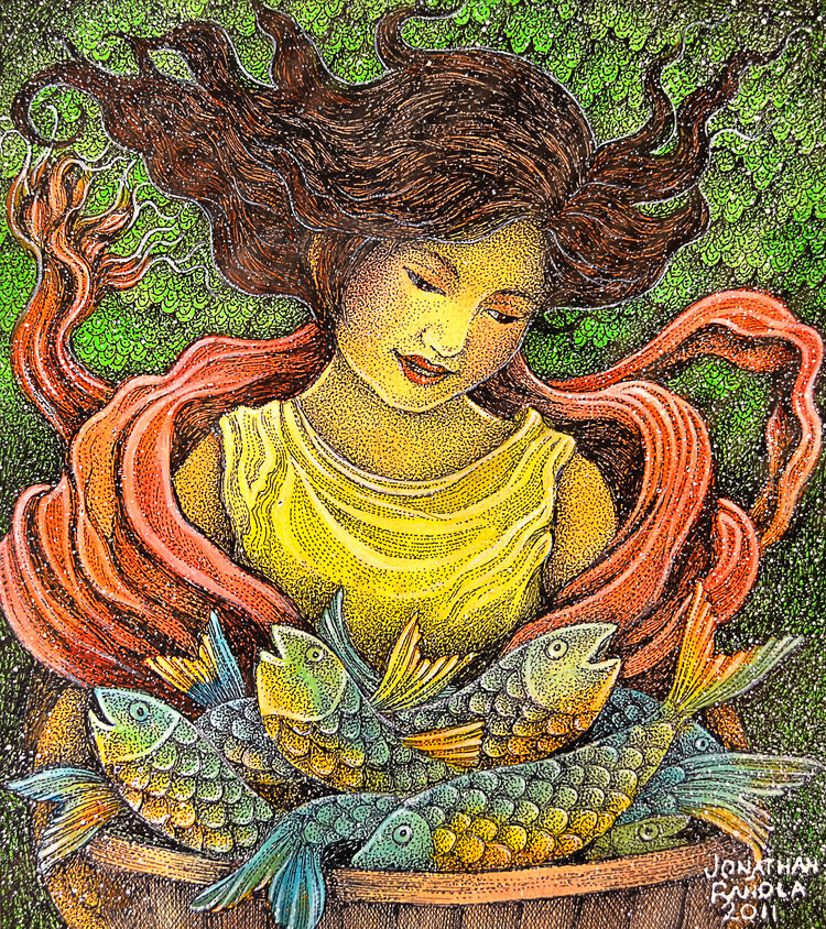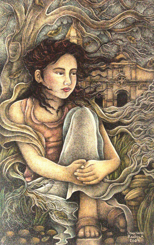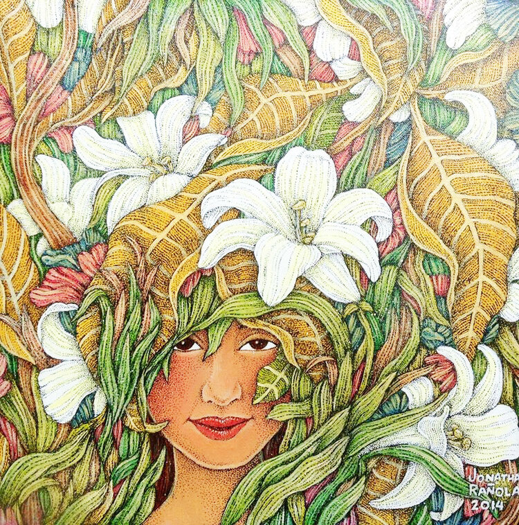 Jonathan specializes in images created from points using pen and ink, beads, ceramic tiles paper and found objects. His paintings are also on permanent display in important hotels and had several solo art exhibits. He has participated in several group shows in important museums and art galleries in the Philippines and Singapore. As a published illustrator, his works have appeared in children’s books, posters, postcards, calendars, ebooks and several publications.